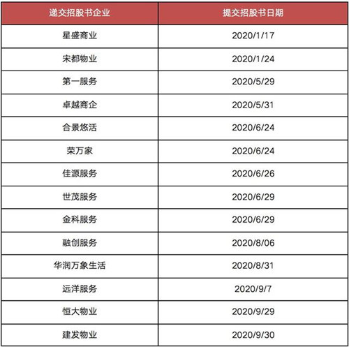 2020年前三季度已遞交招股書(shū)尚未上市交易企業(yè)。數(shù)據(jù)來(lái)源:克而瑞物管