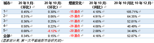 圖4:一、二線城市新建商品住宅銷售價格指數,2020年10月