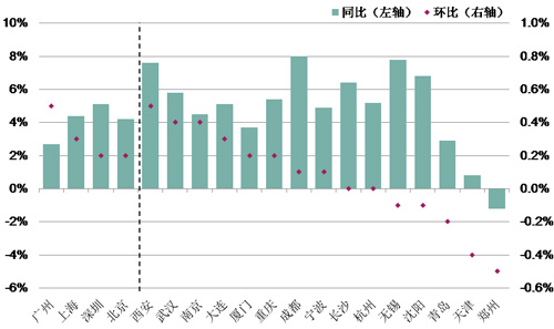 表2: 一線城市新建商品住宅銷售價格變動情況