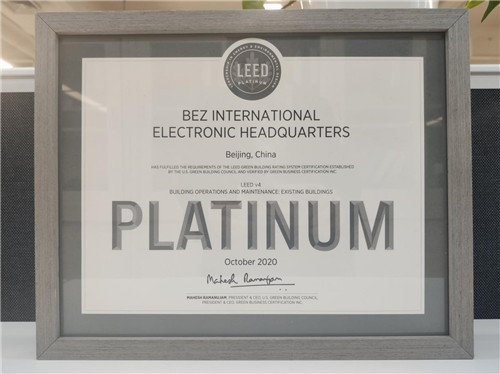 為建設綠色健康科技空間,優化科技園區生態,中關村電子城·(北京)國際電子總部在節能節水、室內空氣質量和舒適度、廢棄物回收等設計方面,經美國綠色建筑委員會(USGBC)在全球綠色事業和可持續發展領域唯一的認證和資質審核機構--綠色事業認證公司(GBCI)進行全面能源審計,被認定為完全符合LEED鉑金級要求。
