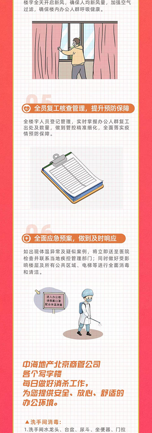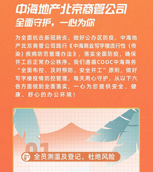 以下為COOC中海商務(wù)華北寫(xiě)字樓全面防疫、保障復(fù)工的多項(xiàng)舉措。
