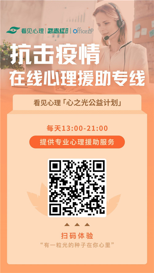 OFFICEZIP心系OZIPer身心健康的每一道防線,特別攜手武志紅旗下「看見心理」平臺,在全國項目推出OffiCARE暖心關愛計劃之OZwellbeing,給予OZIPer心理咨詢援助專線、疫情情緒心理測評、免費心理讀書計劃等心理關懷,解決大家復工后的心理情緒問題。