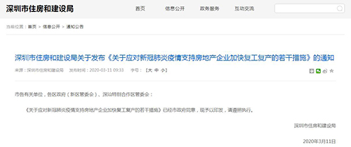 深圳市住房和建設局關于發(fā)布《關于應對新冠肺炎疫情支持房地產(chǎn)企業(yè)加快復工復產(chǎn)的若干措施》的通知