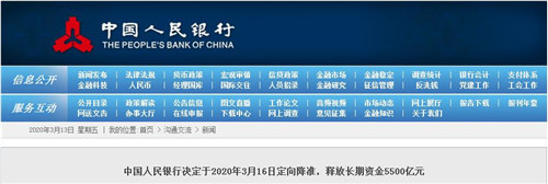 房訊網訊 3月13日,央行官網發布消息稱,為支持實體經濟發展,降低社會融資實際成本,中國人民銀行決定于2020年3月16日實施普惠金融定向降準,對達到考核標準的銀行定向降準0.5至1個百分點。