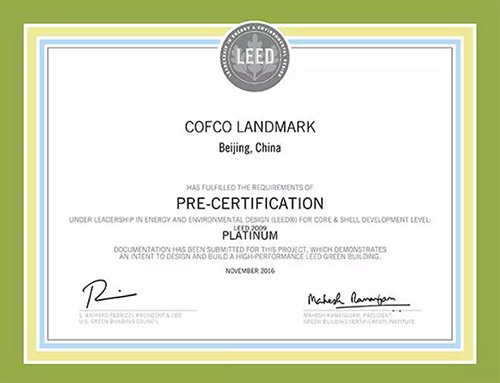 中糧·置地廣場節能降耗的設計還有很多,經過可持續場地、節水、節能、大氣、材料與資源利用、室內環境質量控制、整合建設過程、項目選址與交通、方案創新和區域優先等九大方面及若干指標的嚴格考察,項目獲得了LEED-CS設計階段鉑金級預認證和LEED-CS運營階段金級認證兩項重量級綠建大獎。