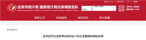 房訊網訊 據北京市統計局最新發布的數據,根據地區生產總值統一核算結果,一季度全市實現地區生產總值7462.2億元,按可比價格計算,同比下降6.6%。