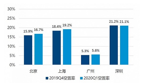 受疫情影響,一季度北上廣深4城寫字樓市場基本處于停緩狀態(tài),空置率在此前高居不下的基礎上持續(xù)推升,再創(chuàng)新高。