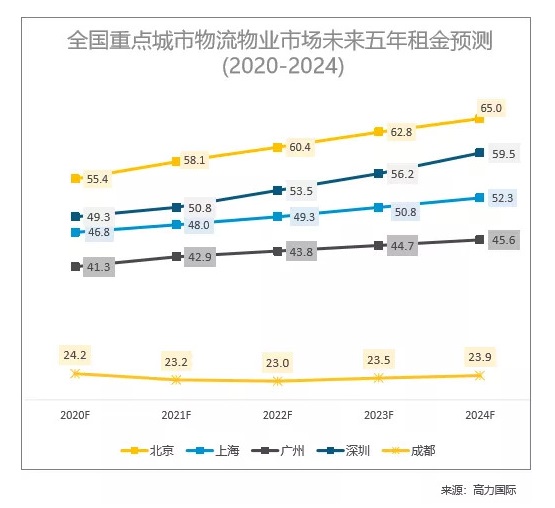 具體來看,一季度北京倉儲市場租金處于高位水平,環(huán)比上漲0.6%,至1.72元/平方米/天。《中國物業(yè)市場2020展望》報告顯示,北京市場倉儲物流需求量較大,加上政策對于物流用地的限制,未來北京倉儲市場可租面積有限,租金將持續(xù)走高。