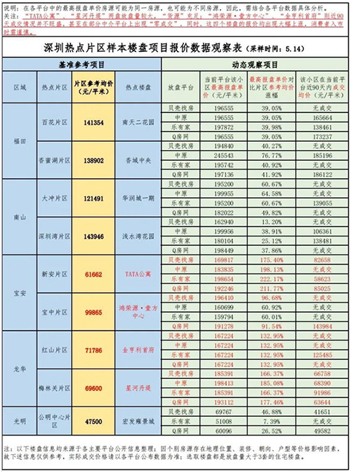 根據(jù)抽樣觀察對(duì)比,深圳部分樓盤報(bào)價(jià)出現(xiàn)大幅上漲,價(jià)格最高偏離幅度超過200%。其中包括寶安區(qū)的TATA公寓、鴻榮源·壹方中心、龍華區(qū)的星河丹堤和金亨利首府。