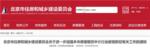 房訊網訊 6月15日,北京市住建委發布《關于進一步加強本市房屋租賃中介行業疫情防控有關工作的通知》。