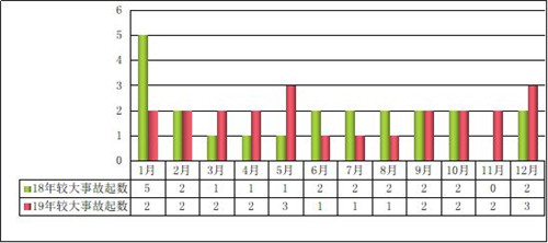 圖3 2019年全國房屋市政工程生產安全較大及以上事故起數情況