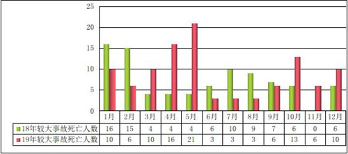 圖4 2019年全國房屋市政工程生產安全較大及以上事故死亡人數情況