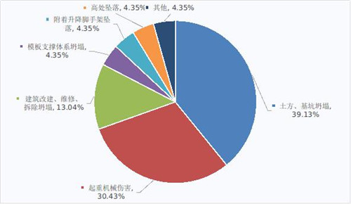 在較大及以上事故方面,以土方和基坑開挖、模板支撐體系、建筑起重機械為代表的危險性較大的分部分項工程事故占總數的82.61%,依然是風險防控的重點和難點;管溝開挖坍塌事故占總數的13.04%,現場管理粗放、安全防護不到位、人員麻痹大意是重要原因;既有房屋建筑改造、維修、拆除施工作業坍塌事故占總數的13.04%,相關領域風險隱患問題日益凸顯;市場主體違法違規問題突出,存在違章指揮、違章作業問題的事故約占總數的80%,存在違反法定建設程序問題的事故約占總數的60%,存在關鍵崗位人員不到崗履職問題的事故約占總數40%。