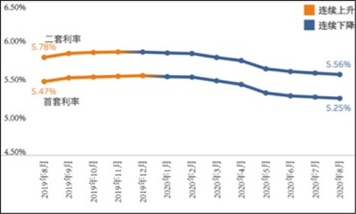 全國房貸利率走勢趨于平緩!8月19日,融360大數據研究院對全國41個重點城市674家銀行分支機構房貸利率的監測數據顯示,2020年8月(7月20日-8月18日),全國首套房貸款平均利率為5.25%,環比下調1BP;二套房貸款平均利率為5.56%,環比下降2BP。首套二套平均利率均較去年同期下降22BP。