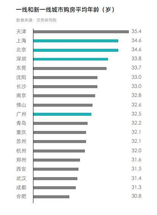 值得關注的是,廈門與哈爾濱兩個城市平均購房年齡也達到35歲,超過京滬34歲、深圳33歲平均水平。