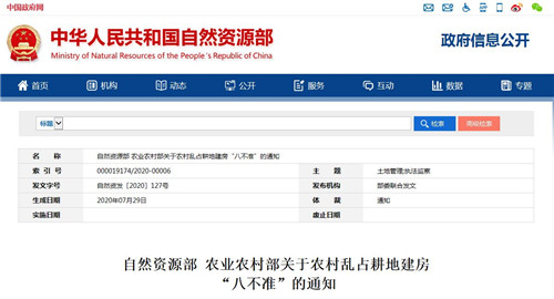 自然資源部 農業農村部關于農村亂占耕地建房“八不準”的通知