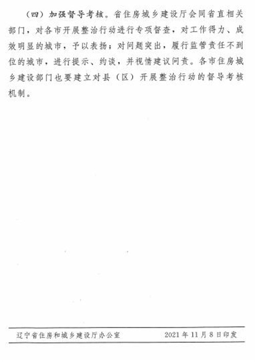 房訊網訊 11月10日,遼寧省住房和城鄉建設廳會同多部門聯合發布《遼寧省持續整治規范房地產市場秩序行動方案》,要求各地以問題為導向,重點整治人民群眾反映強烈、社會關注度高的突出問題,維護房地產市場平穩健康發展。集中整治行動自2021年11月開始,持續到2024年12月。