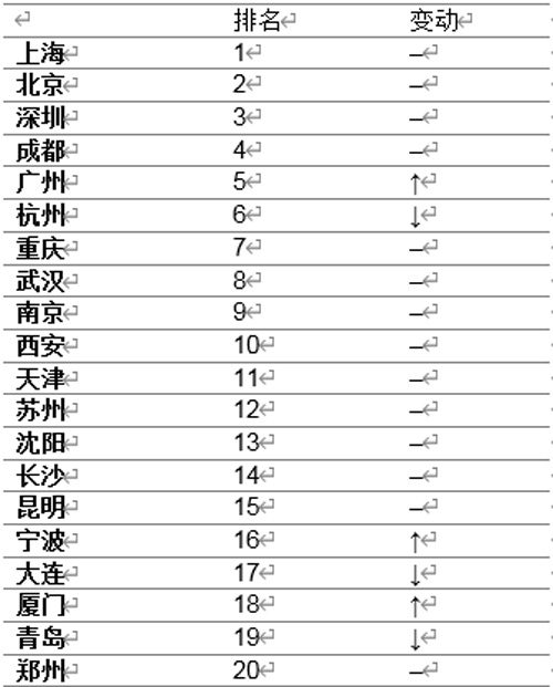 表1:20城零售商指數(shù)排名及變化