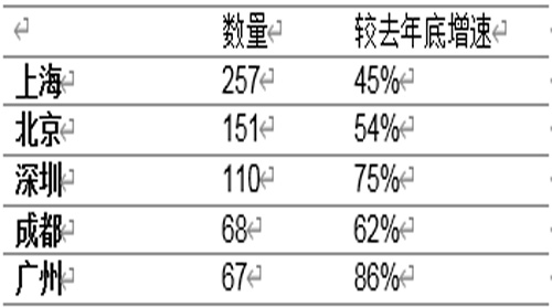 表2:綠色零售空間數(shù)量最多的五大城市