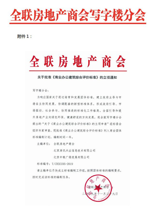 1、全聯房地產商會《商業辦公建筑綜合評價標準》批準文件