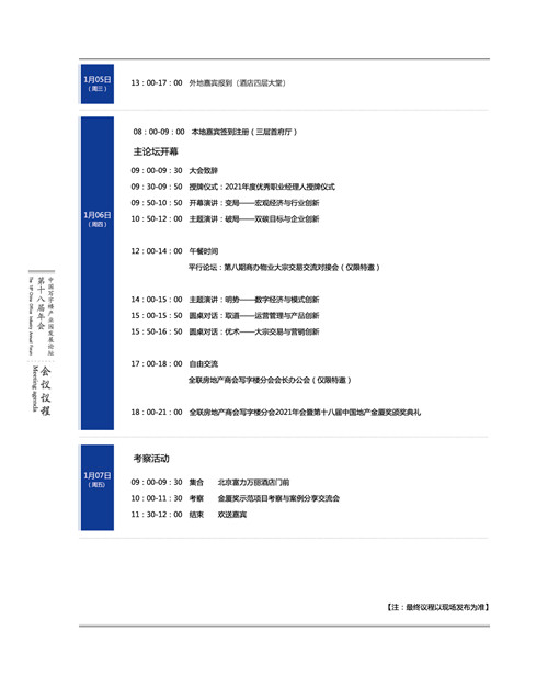 2022年1月6-7日,中國寫字樓產業園發展論壇第十八屆年會將一如既往地邀請有思考精神和行動力的企業家、卓有成就的經濟學家及富有遠見的金融家,與您共同探索高質量發展要求下寫字樓產業園的變局與破局,揭幕中國商業地產“下一個十年”在雙碳戰略下綠色發展、創新發展的新未來。