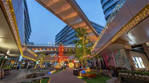 海淀悅界主題商街是E_ZIKOO智慧谷的商業服務配套,也是海淀北區商業的“能量中心”。悅界主題商街總面積約2.5萬平米,涵蓋餐飲、文化休閑、生活服務等多種業態。悅界以24小時延時營業為特色,通過與人們消費需求的深度交互和情感聯結,將美好生活愿景與生活態度在商業空間中放大、轉化、融會,滿足商務菁英們全天候多維需求,構建無界、互動、愜意的商務社交氛圍。目前,海淀悅界主題商街已獲得首批12家【北京市旅游休閑街區】授牌,以及北京市第二批“深夜食堂”特色餐廳街區榜單。