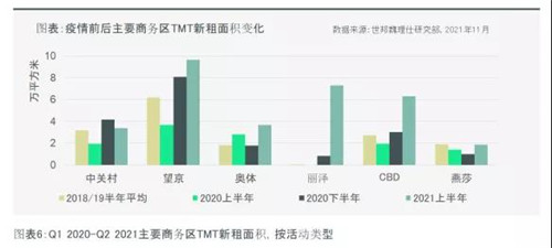新興區(qū)域也將逐步獲得 TMT企業(yè)的接受與認(rèn)可。例如,自疫情以后首批單一產(chǎn)權(quán)的租賃型寫字樓入市以來,通州城市副中心定位和今年初"十四五"規(guī)劃落實的"兩區(qū)"定位,吸引了多家知名企業(yè)入駐,凈吸納量穩(wěn)步提升。而同居數(shù)字自貿(mào)區(qū)區(qū)劃的亦莊和北清路,以及受冬奧會基建和產(chǎn)業(yè)帶動的石景山,也積累起一定規(guī)模的產(chǎn)業(yè)類辦公租戶資源。
