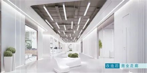 改造后的新動力金融科技中心南側外景效果圖。大廈內部簡約現代,站在長廊可欣賞四季景觀