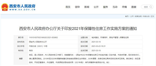 西安市人民政府辦公廳關(guān)于印發(fā)2021年保障性住房工作實(shí)施方案的通知