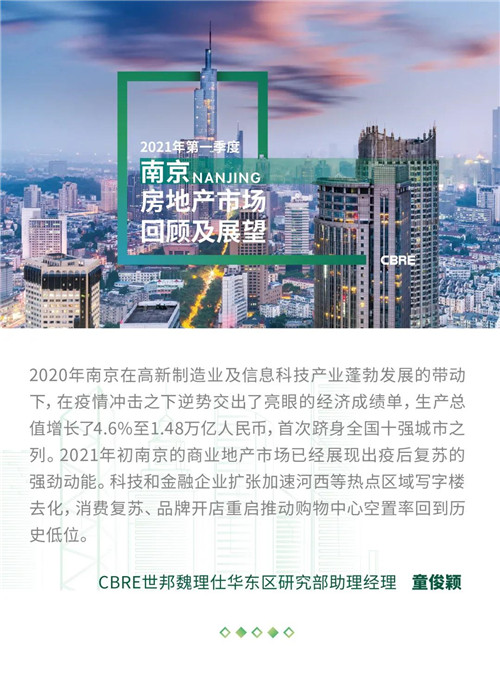 租金方面,南京零售市場在供應有限,同時需求復蘇的驅動下,2021年第一季度南京購物中心首層租金報價上漲了0.1個百分點至每天每平方米19.6元。