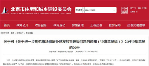 房訊網訊 為進一步加強市場租房補貼發放管理,簡化補貼領取手續,近日北京市住房和城鄉建設委員會起草了《關于進一步規范市場租房補貼發放管理等問題的通知(征求意見稿)》,并向社會公開征求意見。