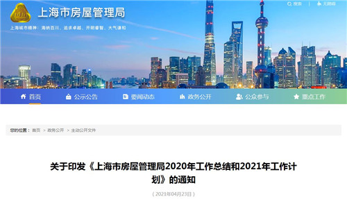 上海市房屋管理局2020年工作總結和2021年工作計劃