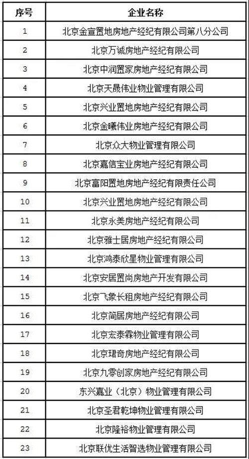 據安居北京消息,5月19日,北京市、區住建部門結合日常監管和信訪投訴處理情況,梳理出第三批共23家重點關注企業名單,提示廣大消費者謹慎選擇。