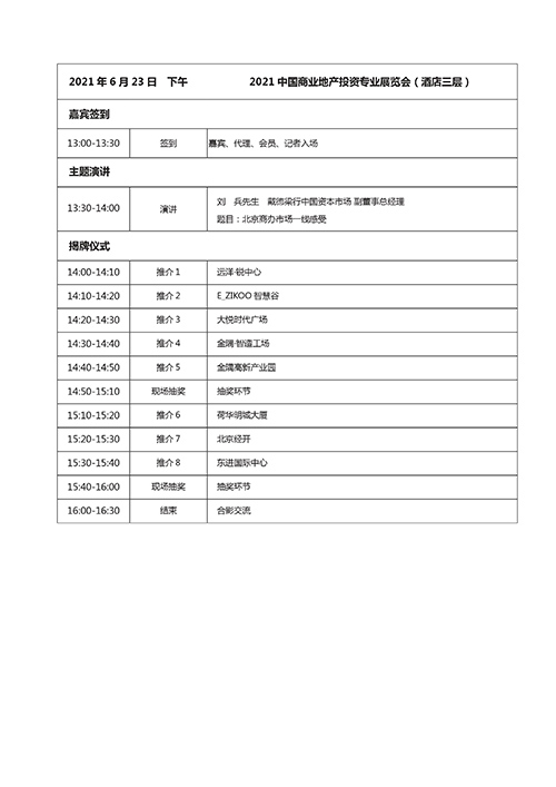 以下是2021中國商業地產投資專業展覽會議程,精彩盛會,與您相約,不見不散!
