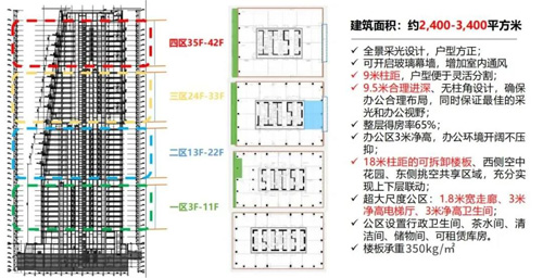 項目總體量15.6萬平方米,主樓高200米,共42層,商業裙樓3層,地下共5層。