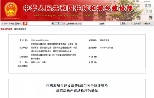 房訊網訊 近日,住房和城鄉建設部等8部門發布關于持續整治規范房地產市場秩序的通知,聚焦人民群眾反映強烈的難點和痛點問題,要求持續開展整治規范房地產市場秩序工作。