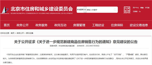 房訊網訊 7月8日,北京市住房和城鄉建設委員會發布關于公開征求《關于進一步規范新建商品住房銷售行為的通知》意見建議。主要內容有規范設置交付樣板間、規范商品住房銷售推廣、落實交付前房屋質量查驗制度、壓實開發企業主體責任四個部分。