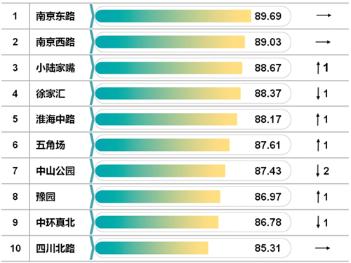 報告顯示,2021年度上半年上海市10個重點商圈購物誠信指數平均為87.80,排名前三的商圈為南京東路商業中心、南京西路商業中心和小陸家嘴商業中心。