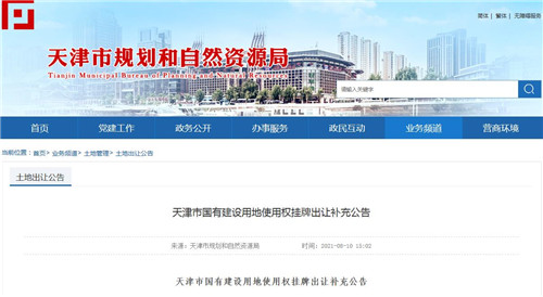 房訊網訊 8月10日,天津市規劃和自然資源局各區分局和天津市土地利用事務中心發布《天津市國有建設用地使用權掛牌出讓補充公告》,提出61宗國有建設用地使用權公開掛牌出讓的公告時間延長至2021年8月31日,掛牌起始時間統一調整為2021年9月1日9:00起,掛牌截止時間統一調整為2021年9月10日(具體詳見掛牌出讓文件)。競買保證金到賬截止時間及競買報名截止時間統一調整為2021年9月8日16:30。