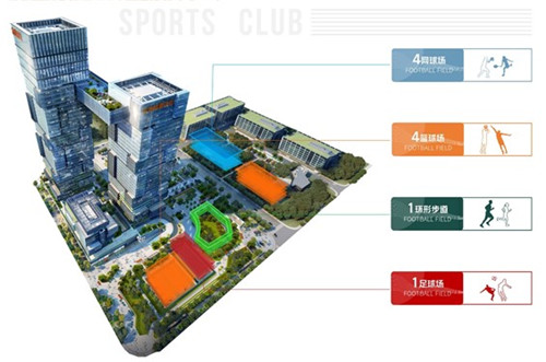 二是自然生態與辦公空間有機結合。深圳金地威新中心擁有超過8個標準足球場大小的"生態體育公園",包括1個五人制足球場、1條夜光環形跑道、4個標準籃球場和4個標準網球場,項目綠化率超過67%。