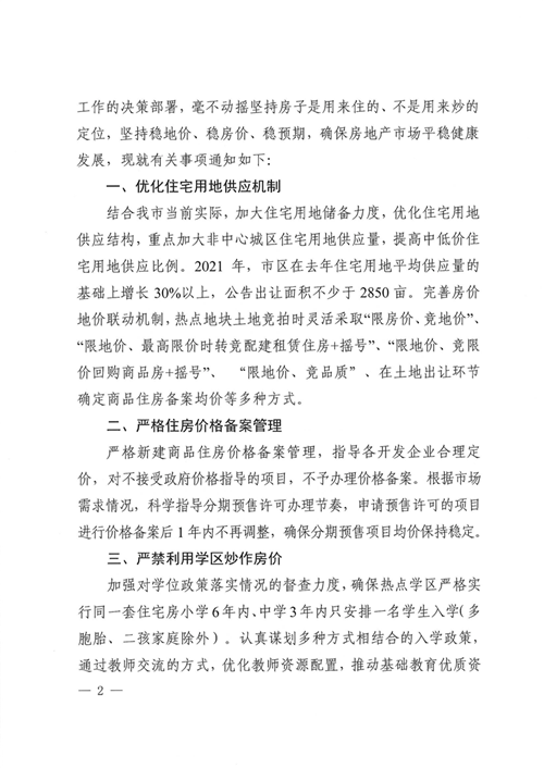 房訊網(wǎng)訊 9月3日,蕪湖市住建局等9部門聯(lián)合發(fā)布《關(guān)于進(jìn)一步促進(jìn)房地產(chǎn)市場(chǎng)平穩(wěn)健康發(fā)展的通知》,從優(yōu)化住宅用地供應(yīng)機(jī)制、嚴(yán)格住房?jī)r(jià)格備案管理、嚴(yán)禁利用學(xué)區(qū)炒作房?jī)r(jià)、加強(qiáng)商品住房預(yù)售管理、完善商品住房限售政策、規(guī)范房地產(chǎn)市場(chǎng)秩序、強(qiáng)化住房信貸審慎管理、加快發(fā)展保障性租賃住房、提升住宅物業(yè)管理水平等九方面入手,確保房地產(chǎn)市場(chǎng)平穩(wěn)健康發(fā)展。