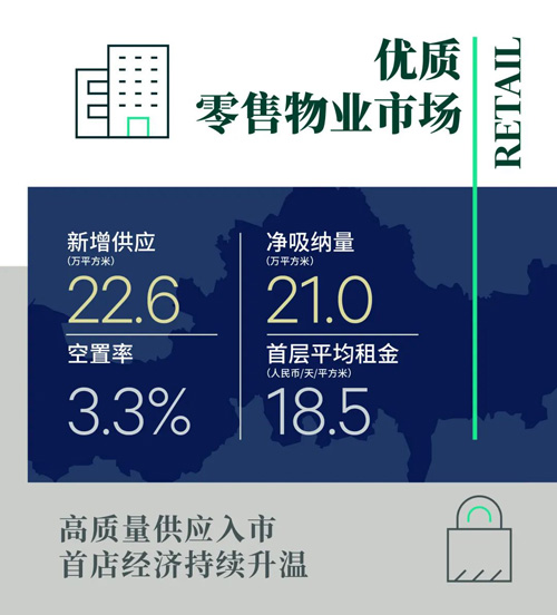 需求方面,高人氣網紅飲品與甜品品牌擴張顯著,推動餐飲業態表現尤為活躍,其中茶顏悅色繼上季度進駐南京,至今已于新街口、夫子廟等多個商圈相繼開出五家門店,咖啡品牌M Stand與% Arabica則爭相選址新開項目,而Manner Coffee南京首店的落位也加速南京咖啡版圖迎來新一輪更迭;此外,愈發活躍的消費氛圍吸引新晉甜品品牌入寧布局,如黃油與面包Butterful & Creamorous與納摩可可Nama Cocoa分別在德基廣場與景楓中心開出江蘇首店。服飾品類位居第二,季內運動品牌The North Face及Nike Rise選址萬象天地開出旗艦店,海外小眾設計師品牌Toteme與Maison Margiela以及高端時裝品牌Lanvin則陸續在德基廣場開出首店;配飾品類中,手表和珠寶品牌比例相當,其中意大利珠寶品牌Buccellati江蘇首店于德基廣場亮相。至此,南京零售市場的品牌集聚效應持續高漲,供需兩端積極作用下,全市購物中心首層平均租金環比上漲0.6%至每天每平方米18.5元。