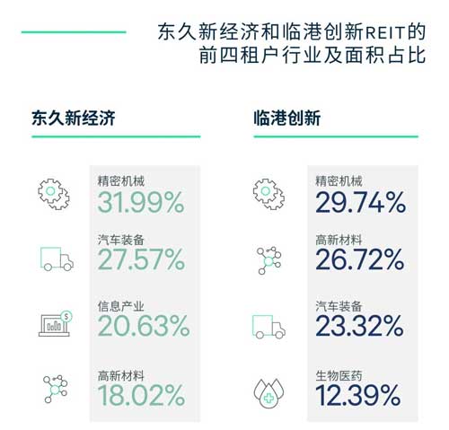 以此次上市的臨港創新和東久新經濟REIT為例,根據招募說明書公布的信息,其租戶集中地來自于精密機械、汽車、新材料、信息產業和生物醫藥這五個先進制造和高科技產業。