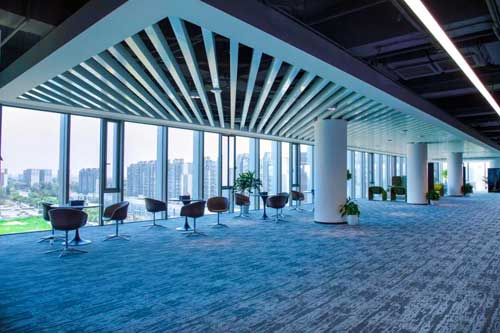 獨立總部樓座配備4-6部高速電梯,從停車層到辦公層瞬間速連,超大電梯轎廂寬敞設計,降低等候時間的同時,避免上下班時間集中使用的擁擠。辦公層通過鐵藝與綠植區(qū)隔,綠植景墻劃分空間結構,煥新室內空氣。玻璃幕墻與超大柱距設計,以及約4.2米挑高的辦公層共同構建明亮、舒適的職場體驗。