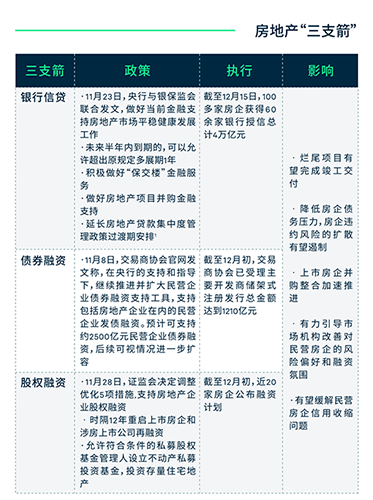 為加大金融對實體經濟的支持力度,11月25日,央行公告降準0.25個百分點,共計釋放長期資金約5,000億元。同月,央行、銀保監會、證監會陸續從信貸、債券、股權三方面出臺支持房企融資的政策,被市場稱為紓困房企的“三支箭”。防疫政策調整疊加地產“三支箭”催化,金融市場迅速反彈,11月11日至今上證指數漲幅超4%。未來幾個月,預計更多的穩增長措施將繼續出臺。