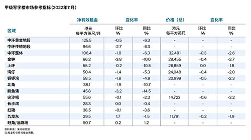 香港島寫字樓繼續受到市場波動的打擊,租金跌幅加速。由于寫字樓租戶持觀望態度,11月租賃活動仍相對低迷。市場錄得數宗寫字樓升級案例。