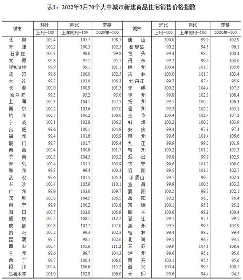 房訊網訊 4月15日,國家統計局發布2022年3月份商品住宅銷售價格變動情況統計數據,國家統計局城市司首席統計師繩國慶解讀表示,2022年3月份,70個大中城市中,商品住宅銷售價格環比下降城市個數減少,同比下降城市個數增加;各線城市商品住宅銷售價格環比趨穩,同比下降或漲幅回落。