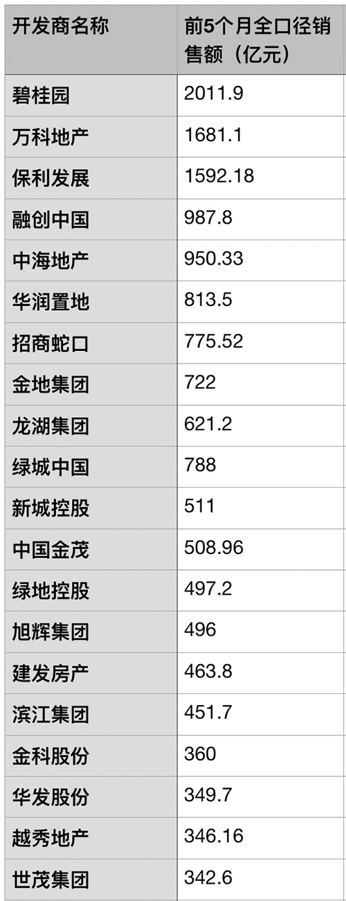 前5個月僅有3家房企銷售額過千億