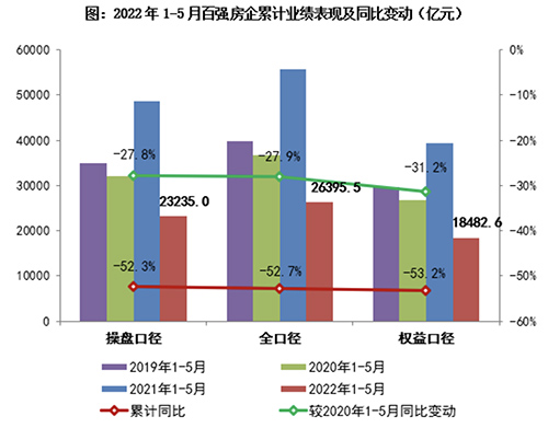 據克而瑞報告顯示,5月份百強房企單月業績同比下降59.4%,降幅保持在較高水平。