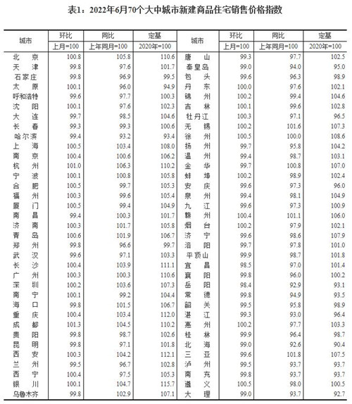 國家統計局7月15日發布2022年6月份商品住宅銷售價格變動情況統計數據,國家統計局城市司首席統計師繩國慶解讀表示,2022年6月份,70個大中城市商品住宅銷售價格環比總體趨穩,環比上漲城市個數增加,同比繼續走低,同比上漲城市個數減少。